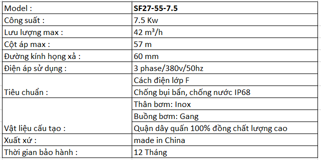 Bơm chìm nước thải Veratti Model SF27-55-7.5